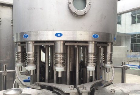 There are 8 filling valves, and the parts in contact with beverages are all 304 stainless steel. The inner surface of the filling cylinder is mirror polished. High-speed, large-flow, high-precision filling valves, fast filling speed, accurate liquid level.