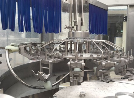 Except for the bottle discharge star wheel, the entire process of the bottle conveying system is controlled by clamping the bottleneck, and the star wheels are all 304 stainless steel clamping bottleneck star wheels. The air conveying system is used to convey the empty bottles to the bottle inlet star wheel.