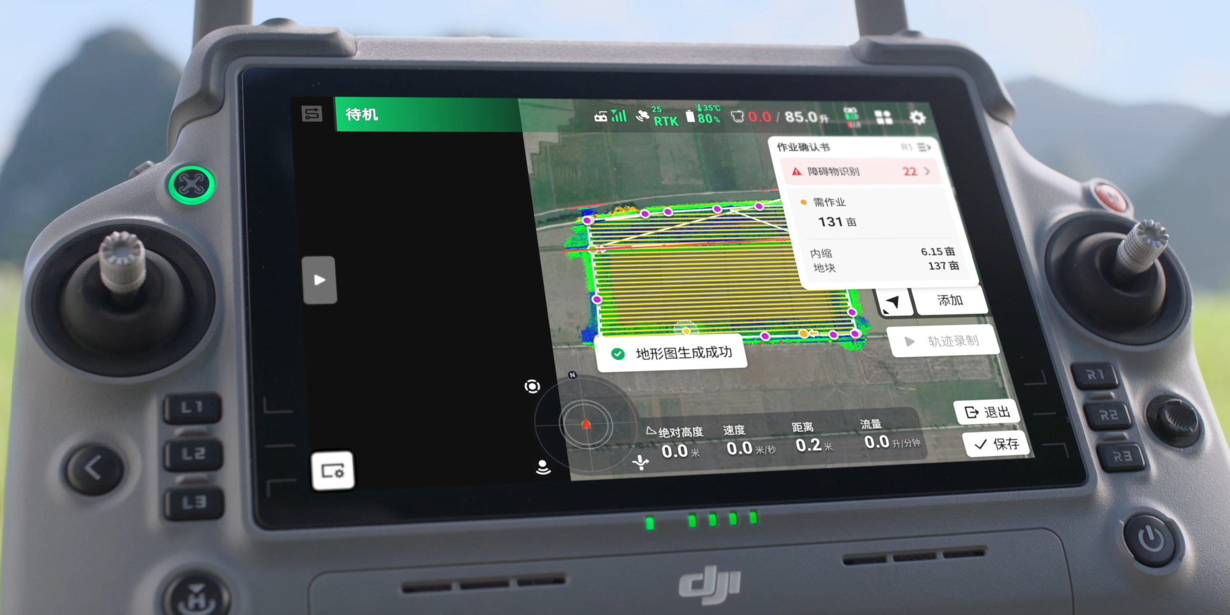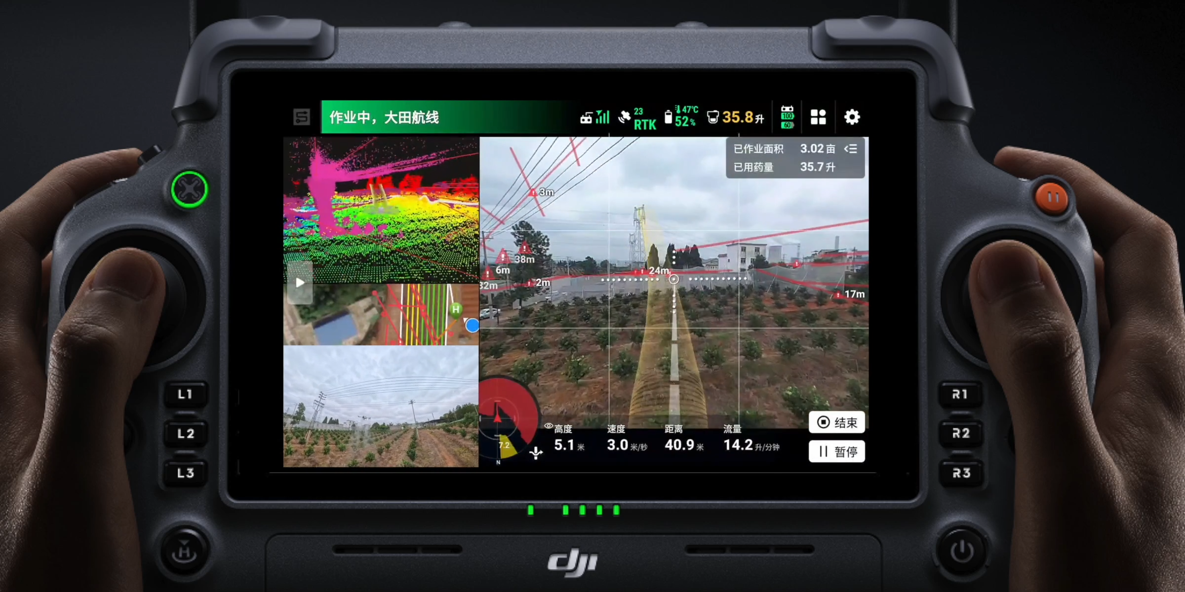 LiDAR Point Cloud Real-Time Display 2.0, multi-directional auxiliary images and the main FPV view provide the pilot with a comprehensive field of vision. All three display windows support rich AR features³, offering clear visibility of field boundaries, obstacles, breakpoints and other key information.