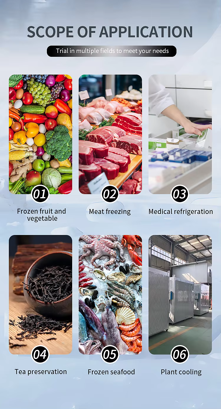 - Features an energy-saving Hot Fluorine Defrost Unit, providing a highly efficient and reliable method to prevent ice buildup. This advanced system offers superior performance compared to traditional cold storage electric defrost machine or cold storage water defrost machine solutions, ensuring continuous operation and reducing maintenance.