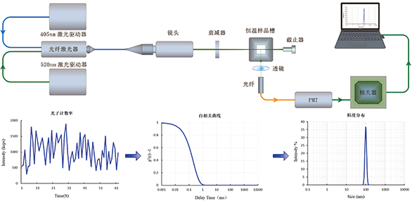 The test optical path, constructed using a high-performance, low-noise fibre-coupled semiconductor laser and a fully fibre-based dynamic light scattering detection system, employs a low-dark-current, high-sensitivity Hamamatsu photomultiplier tube (PMT) as the photodetector. This endows the entire test system with exceptional sensitivity and signal-to-noise ratio, laying the foundation for testing accuracy and high resolution.