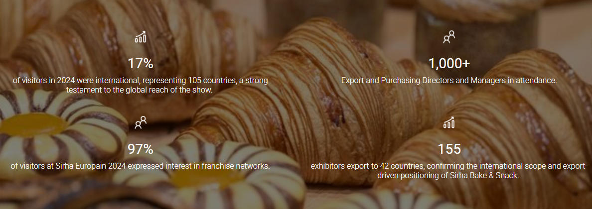 Sirha Bake & Snack attracts top decision-makers from across the sector: leading bakery chains (Paul, Maison Kayser, Marie Blachère…), major foodservice groups (Sodexo, Burger King, Marriott, Starbucks), retail giants (Carrefour, Intermarché, Leclerc, Monoprix), as well as renowned manufacturers (Bridor, Délifrance, Ferrero, Coca-Cola, Puratos…). The show also welcomes independent artisans, coffee shops, snacking brands, and international buyers from over 100 countries.
